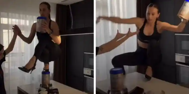 Бұл челленджде қатысушылар өкшелі аяқ киім киіп, өте ыңғайсыз қалыпта және тұрақсыз заттардың үстінде отырып тепе-теңдікті сақтауы тиіс. Алайда әйел тепе-теңдігін ұстай алмай құлап, омыртқасынан компрессиялық сынық алды.