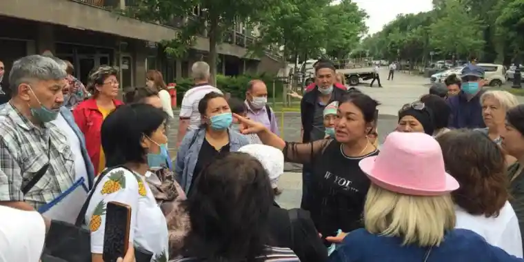 «Борышкерлер 6-11 шілде күні митинг өткізетінімізді хабардар ету үшін Нұр-Сұлтан қаласы әкімдігіне келіп тұрмыз. Канцеляриядан ешкім телефонд көтермейді. Карантин дейді. Бірақ айлықтары жүріп жатыр. Қашықтықта жұмыс жасау бір орынға қайылмаған. Біз сонда кімге ақша төлеп жатырмыз? Не үшін ақша төлеп жатырмыз. Көлгіновтерде бес көмекшіден бар. Не жасайтындары белгісіз. Хаттарыңызды жәшікке тастап кетіңіздер дейді. Алайда, ол хат жоғалып кетуі мүмкін ғой. Хатымызға мөр бастырмай кетпейміз», - дейді Қанағат Тәкеева фейсбукте тікелей эфирде.
