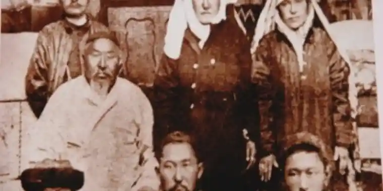 Екінші қатарда – орындықта отырған Абай, Еркежан, Камалия (Әубәкірдің әйелі).