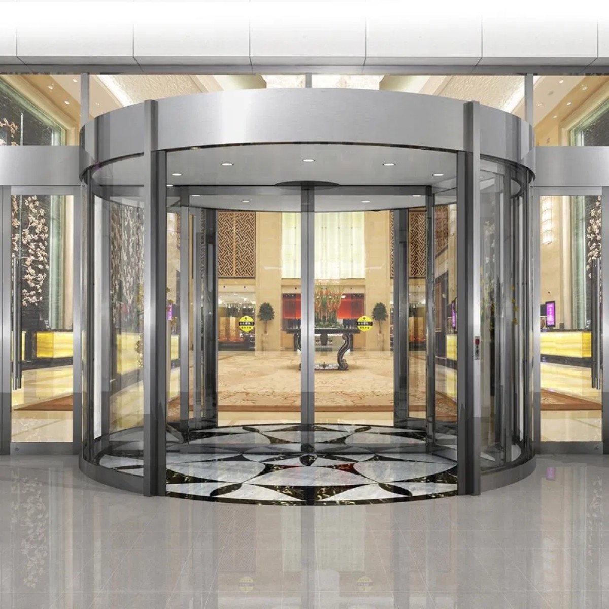 Бұдан бөлек, айналмалы есік сәулетшілердің де көңілінен шықты: ол ғимараттың салтанатын, вестибюльдің сән-салтанатын айқын сезінуге жағдай жасады.