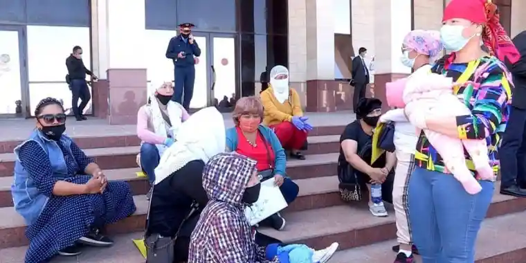 «Он әйел әкімдік алдына түнеуге бардық. Түнімен сонда бала-шағамызбен жаттық. Әкімдіктен ешкім шықпады. Мен өзім үшінші топтағы мүдедекпін. Балам бірінші топтағы мүгедек. Төрт баланы жалғыз бағып отырмын. 2015 жылдан бері пәтер кезегіндемін. Кезек жылжымайды. Бізден кейін кезекте тұрғандар баспаналы болып кетті», - дейді Мalim.kz сайтының тілшісіне Нағима ӨТЕНОВА.