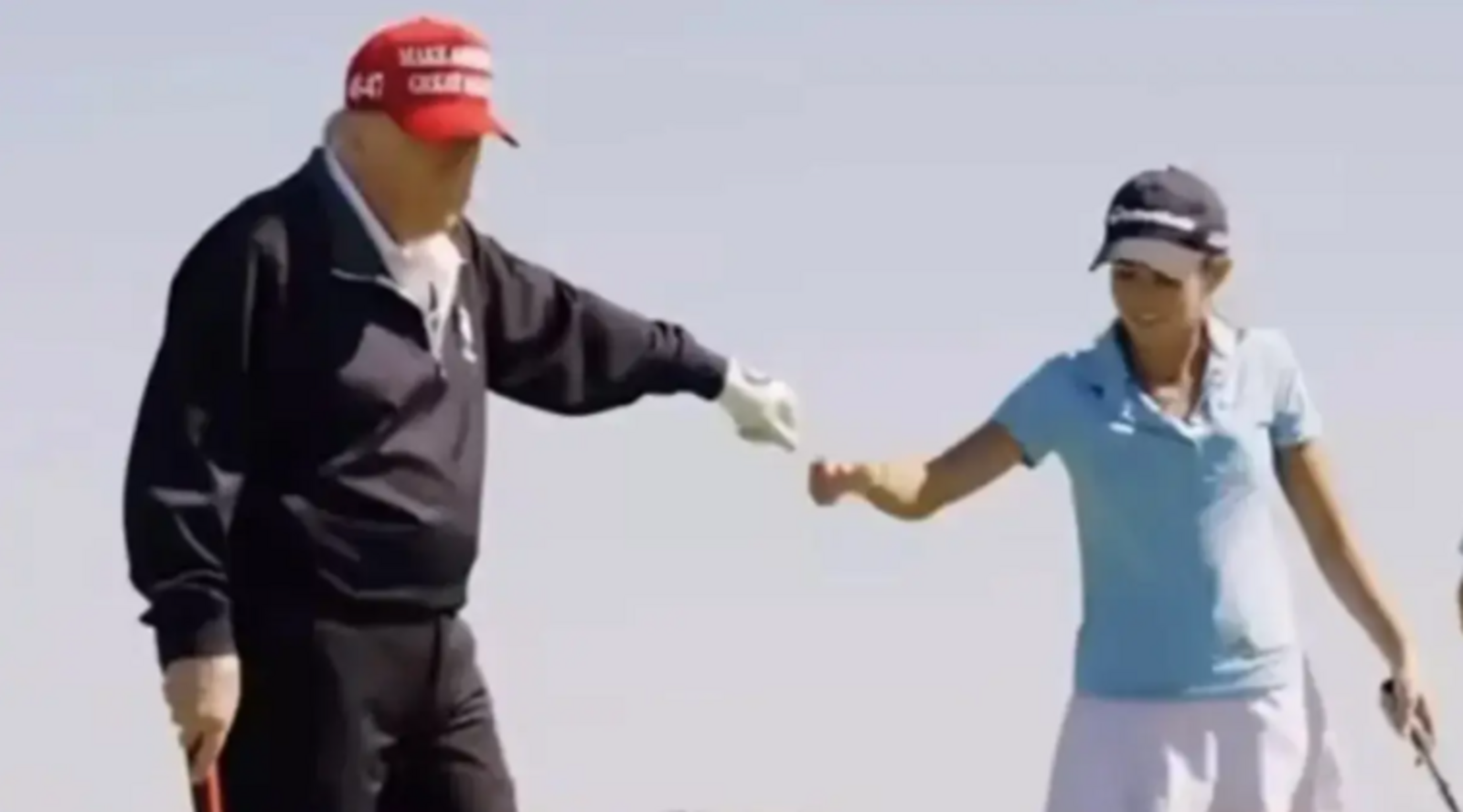 Видеода Трамптың гольф алаңында уақыт өткізіп, бірнеше соққы жасап, немересімен бірге гольф көлігіне мініп жүрген сәттері бейнеленген.
