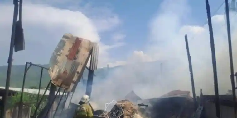 ТЖМ хабарлауынша, тілсіз жау 120 шаршы метр алаңды шарпып, шатыр, шөп және 4 тонна жүгеріні жалмап кеткен.