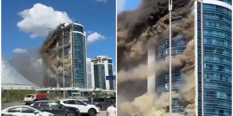 Әлеуметтік желі қолданушылары алапат өрттің суреті мен бейнежазбасын жариялап жатыр. Онда «Хан шатыр» СОО маңындағы егіз ғимараттың бірінің қатты өртеніп жатқаны байқалады, деп хабарлайды Malim.kz.