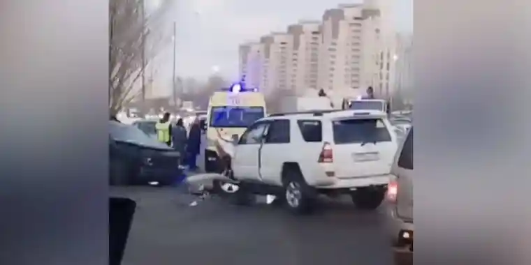 Куәгерлер түсірген видеода бірнеше көліктің соқтығысып тұрғаны, апат болған жерде жедел жәрдем, полиция көлігі тұрғаны байқалады. Көліктердің қатты соқтығысқаны да көрінеді.