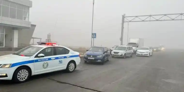 Атырауда қалың тұман жол қозғалысын қиындатты