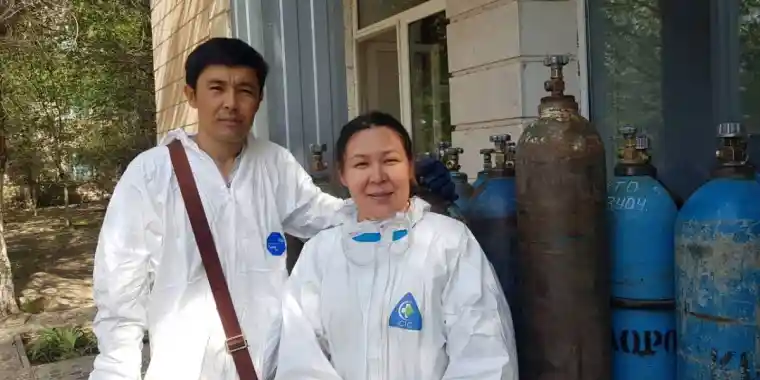 Жетінші күн дегенде аурухананың ішіне кірдім. Қиналып жатқан науқастарды алғаш көргенде, күйзеліске түстім. Өйткені ондайға дайын емес едім. Кіріп келген бетте ауа жетпей ентігіп жатқан бір апа оттегі жастығын беріп, толтырып беруімді сұрады. Өмірі ондайды көрмеген соң, оны қалай толтырады деп сасып қалып, оны Асхатқа бердім. Екі-үш сағаттан кейін бұлай етуге болмайды, көмектесуім керек деп есімді жиып, бойымды үйрете бастадым. Қазір үйреніп кеттік, ішке баллондарды кіргізіп, лифтімен көтереміз, палаталарға апарамыз, бос баллондарды жинап, сыртқа шығарамыз.
