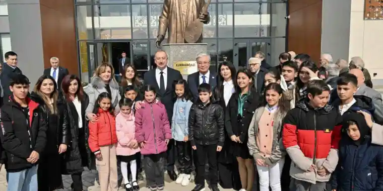 Қазақстан Президенті Қасым-Жомарт Тоқаев пен Әзербайжан Президенті Ильхам Әлиев қазақтың дәулескер күйшісі Құрманғазы атындағы Балалар шығармашылығы орталығының салтанатты ашылу рәсіміне қатысты.