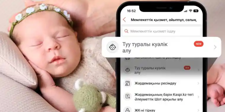 Енді баланың туу туралы куәлігін тура үздік Kaspi.kz қосымшасында онлайн алуға болады.