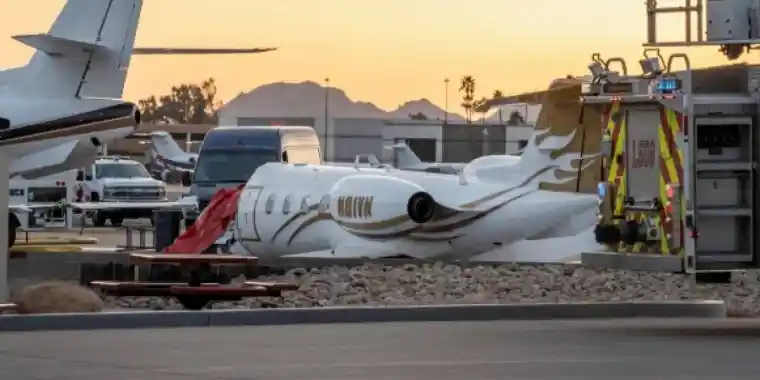 Bombardier Learjet 35A ұшағы Скоттсдейл әуежайына қонғаннан кейін ұшу-қону жолағынан шығып кетіп, жеке аумақта тұрған Gulfstream 200 бизнес ұшағына соғылған.