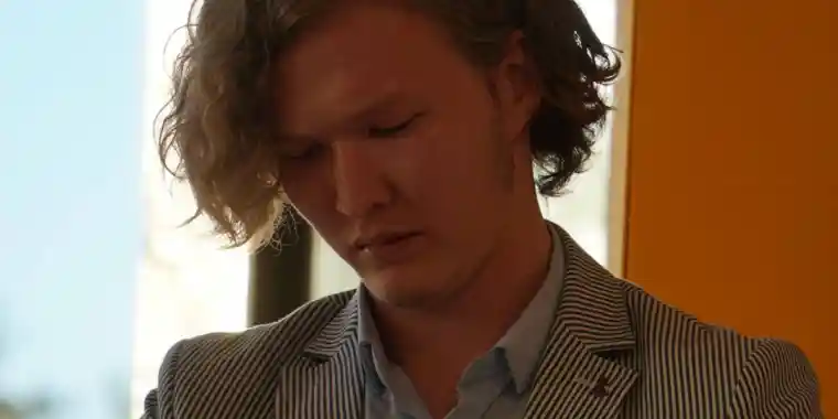 Бір бозбала тамсанып отырады,