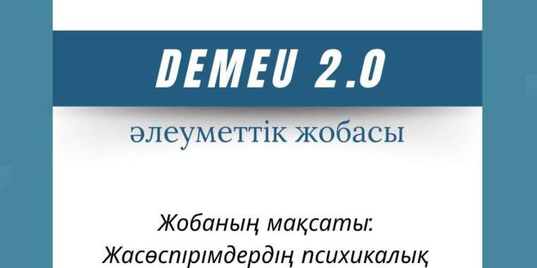 Маңғыстау облысының білім басқармасының тапсырысымен «Қолдау» орталығы» жеке меншік мекемесі жасөспірімдердің психикалық денсаулығын қалыптастыру және дамытубағытында «Demeu 2.0» әлеуметтік жобасын бастады.