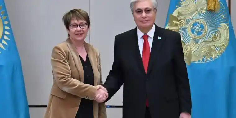 Қасым-Жомарт Тоқаев Шетелдік инвесторлар кеңесінің 36-шы пленарлық отырысына қатысу үшін Қазақстанға келген Еуропалық қайта құру және даму банкінің президенті Одиль Рено-Бассомен кездесу өткізді.