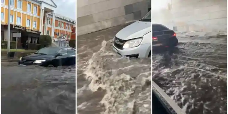 Әлеуметтік желілерде көлге айналған астана көшелерінің видеолары жарияланып жатыр. Автокөліктер суды белуаранын кешіп, бейне бір қайыққа аналғандай.