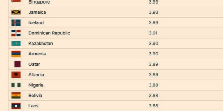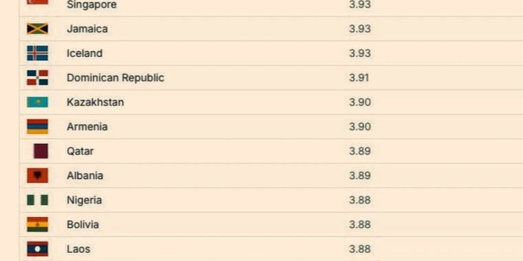Тізімнің соңында Қазақстанның артында небәрі 7 ел бар. Соңғы орынды Никарагуа алыпты.