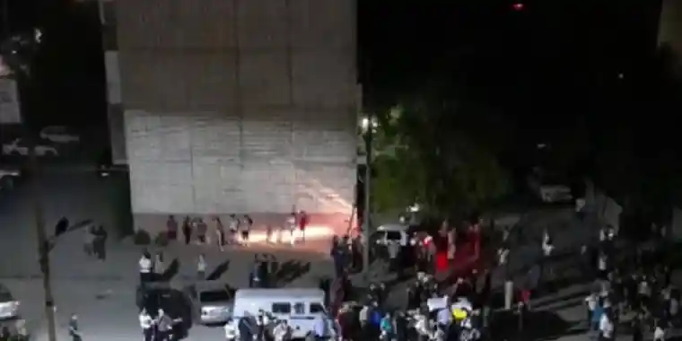 Әлеуметтік желіде тараған видеода Сәтбаевтың жүздеген тұрғыны көшеде жиналған сәті көрінеді. Сондай-ақ полиция көліктерінің өртенгені көрінеді.