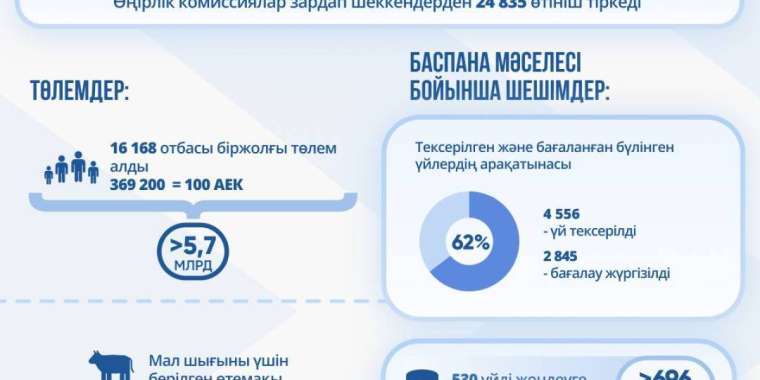 Ал арнайы құрылған өңірлік комиссияға жәрдем алу үшін өтініш өткізгендер саны – 24 мың 835. Мал шығынын өтеу үшін мемлекет тұрғындарға 916 миллион теңгеден астам қаржы берген.