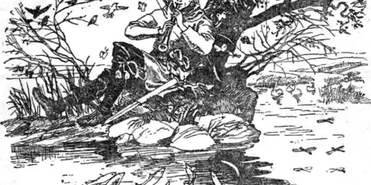Қас қарая шаруа қыстақтарына бұрылып, сауық тілеген қыз-бозбалаға флейта ойнап, көңілдерін көтереді. Олар оған шарабы мен сырасын беріп, құрметтеп түнетіп жібереді екен.