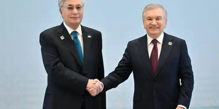 Қасым-Жомарт Тоқаевты Өзбекстан президенті Шавкат Мирзиёев күтіп алды.