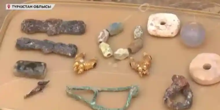 Түркістан облысында екі мың жыл бұрын жасалған алтын әшекейлер табылды (ВИДЕО)