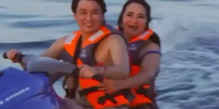 Ол ата-анасы және бауырларымен бірге Алакөлге аттанып, ерекше уақыт өткізуде. Бейнежазбада әншінің жағалауда тұрғаны мен анасымен гидроскутермен келе жатқанын көруге болады.