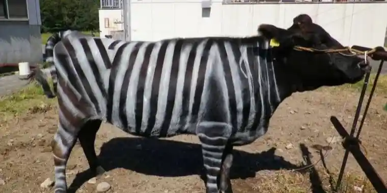 Жапондық ғалымдар сиырларды зебра тәрізді етіп бояу арқылы олардың шыбын шаққаннан аз зардап шегетінін дәлелдеп, биология саласында сыйлық алды.